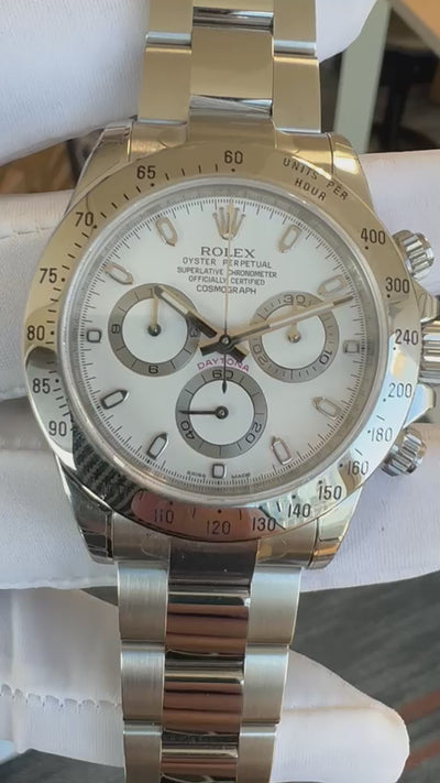 Key Selling Points: Extremely rare "full film New Old Stock" (NOS) condition, discontinued white dial steel Daytona, a highly sought-after collector's item